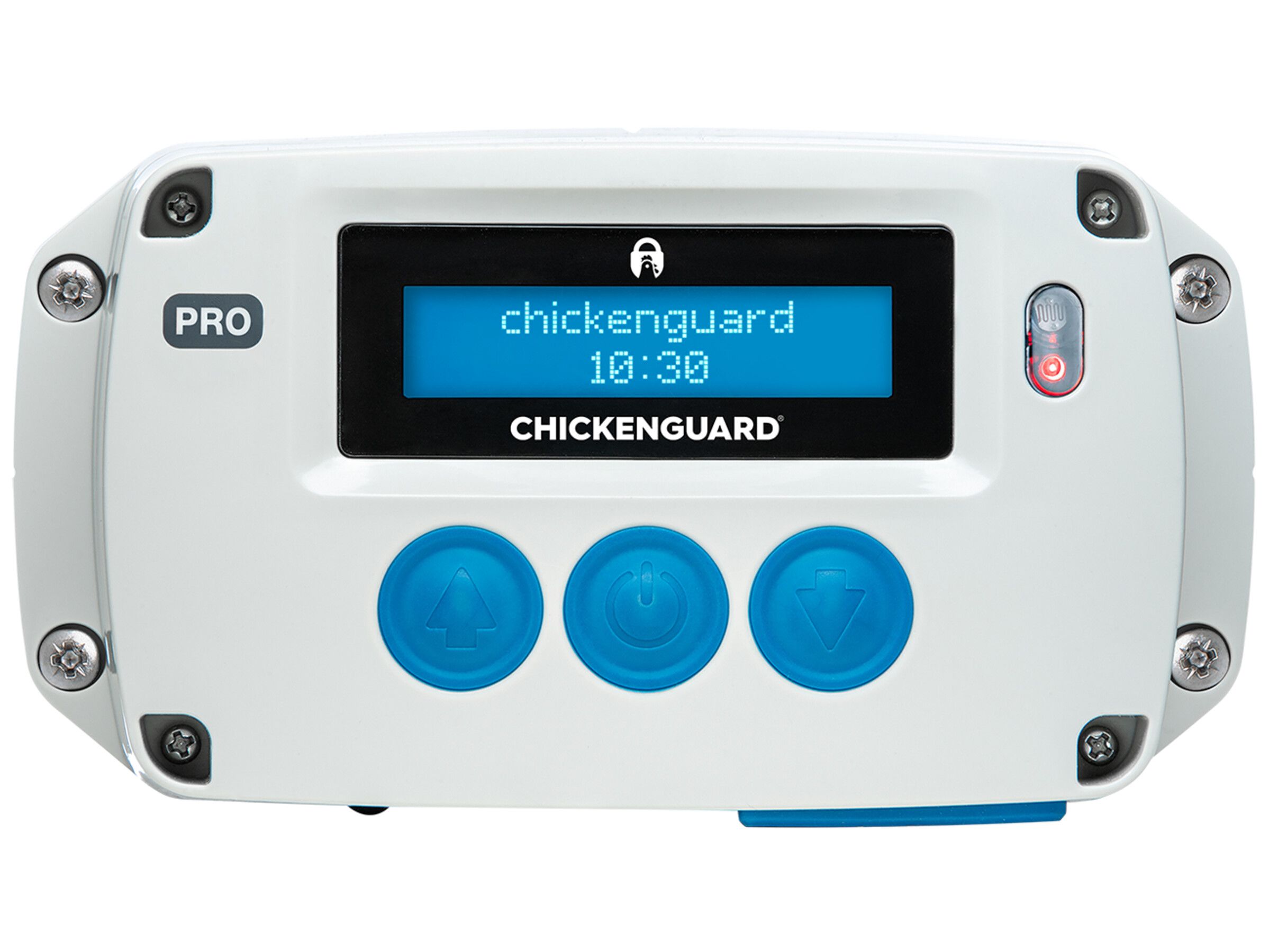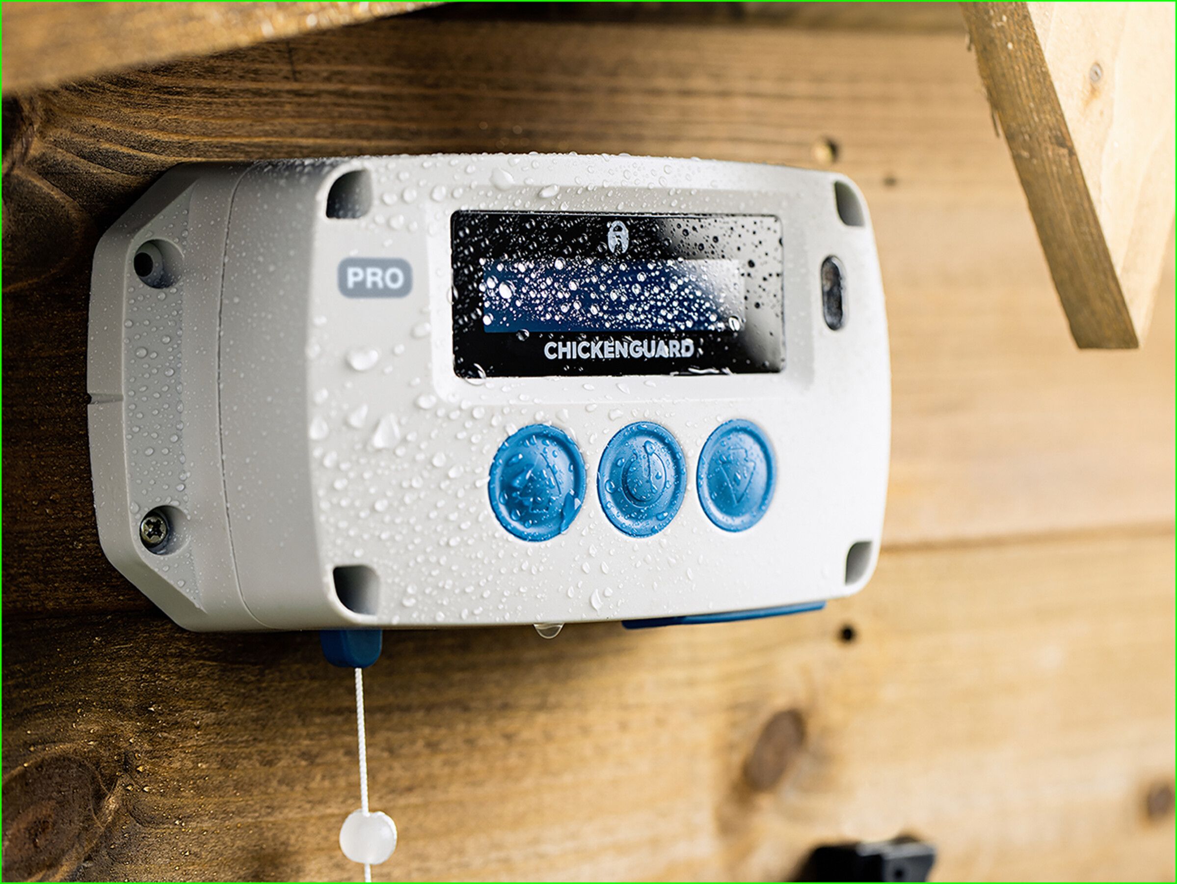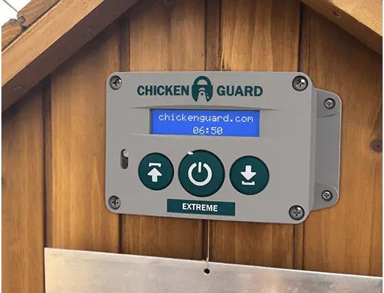 Met de Chicken Quard – Extreme Automatische Deuropener met ingebouwde timer kunt u uw hok op een door u ingestelde tijd openen en sluiten, of u maakt gebruik van de ingebouwde lichtsensor die de ultieme flexibiliteit geeft voor de bediening van het schuifluik.  Door de speciale behuizing van de Extreme, blijft de opener werken onder de meest extreme weersomstandigheden.  U hoeft niet meer bang te zijn dat en ‘s nachts roofdieren uw hok kunnen binnen dringen. Ook het opstaan voor dag en dauw om uw kippen naar buiten te laten is verleden tijd. U kunt rustig een paar dagen weg terwijl u weet dat uw hok op het juiste moment gesloten is en weer open gaat.  Ook ideaal om te voorkomen dat uw haan u elke morgen wakker kraait. De automatische deuropener wordt geleverd met een geïntegreerde timer, een handmatige deurcontrole en een fail safe modus voor extra gemoedrust. De Chicken Quard deuropener Extreme werkt op 4 AA batterijen (worden meegeleverd) De bediening van de knoppen is erg simpel, zelfs met dikke handschoenen aan. De opener heeft een indicatielampje zodat u tot een afstand tot 100 meter kunt zien als het hok gesloten is. Tevens functioneert deze lamp als waarschuwing voor als de batterij spanning te laag wordt. De Chicken Quard Extreme heeft een hefvermogen van 4 Kg.